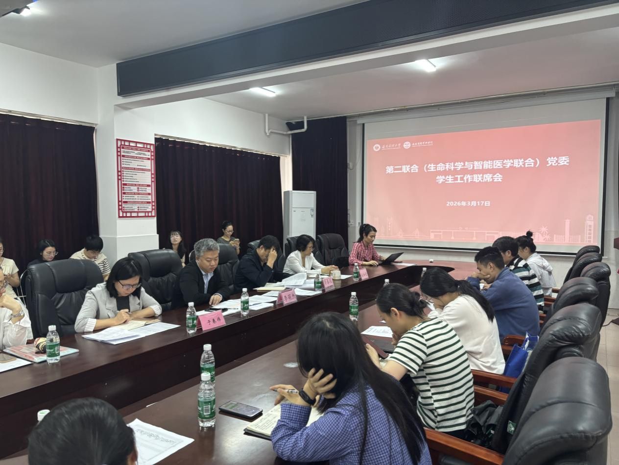 3月17日,第二联合党委(生命科学与智能医学联合)召开学生工作专题联席会,深入落实学校2026年干部工作会议精神,统筹推进学生教育管理、服务保障各项工作,扎实推动“三全育人”走深走实。党委书记李春报,党委副书记李萌杰、林加论,生命科学与医学技术学院副院长于春伟,学院教学主要负责人、全体辅导员和班主任参会,会议由李萌杰主持。