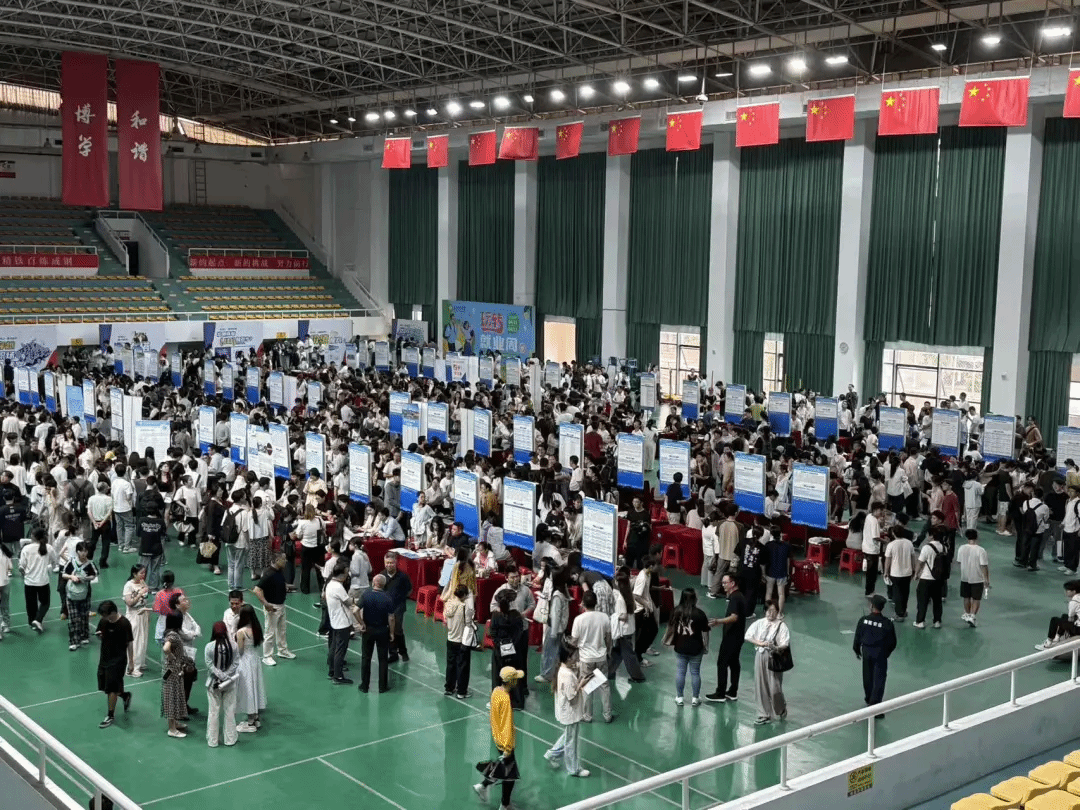 4月12日上午,由中共海南省委组织部、海南省人力资源和社会保障厅、海南省教育厅、海南省卫生健康委员会联合主办的2026年“海南学子 就在海南”留才行动——海南医科大学“春季促就业攻坚行动”暨2026届毕业生招聘会(医学专场)在学校子文体育馆成功举办。相关市县卫健系统和医疗卫生单位在现场同步开展招聘宣讲、现场面试等活动,搭建起校地协同、供需对接的优质就业桥梁。