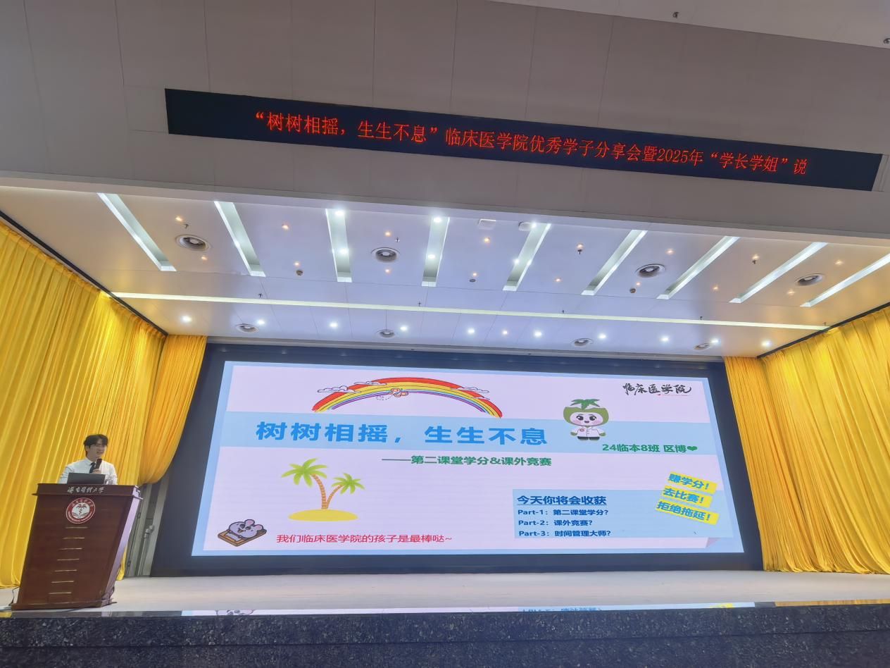 本次分享会是经验的传递,更是精神的传承。学长学姐们以其扎实的学识修养和丰富的实践经验,为初入医学殿堂的新生们照亮了前行的道路。他们所传递的,不仅是具体的学习方法和实践技巧,更是对医学事业的热爱与坚守,对人生目标的不懈追求。“树树相摇,生生不息”,既是临床医学院学子间互助共进、薪火相传的生动写照,也是学院人才培养的优良传统。愿今日播下的种子,在未来破土而出,茁壮成长,这片医学的森林,因每一棵树的挺拔与繁茂,而更加生机盎然,优秀的力量在传承中生生不息!相信在学院全体师生的共同努力下,新一代临床学子必将在医学道路上砥砺前行,为健康中国建设贡献青春力量!