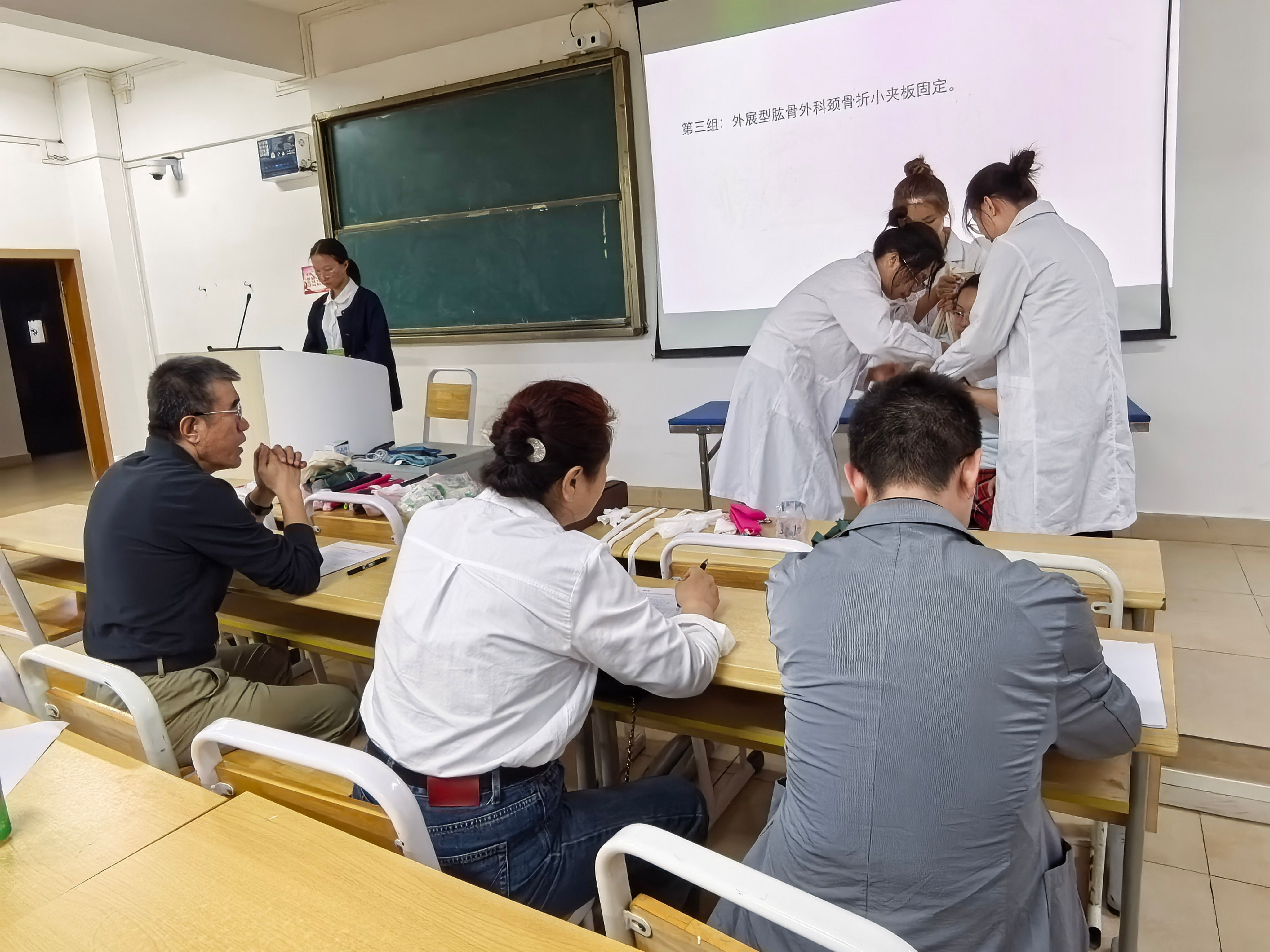 在海南自贸港建设蓬勃推进、医疗卫生事业开放创新不断深化的背景下,12月18日晚,我校2025年中医骨伤临床技能大赛决赛在4-106教室举办。