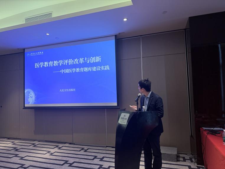 人民卫生出版社郭瑞成老师作《医学教育评价改革与创新-中国医学教育题库建设实践》专题汇报,分享了人工智能时代医学教育发展趋势及教育评价改革实践成果,并正式宣布两项重要举措:联合理事会启动检验医学专业题库建设,为医学检验教育发展赋能;同步开展医学教育题库建设创新大赛,通过“以赛促教、以赛促研”的模式助推医学教育评价体系升级。