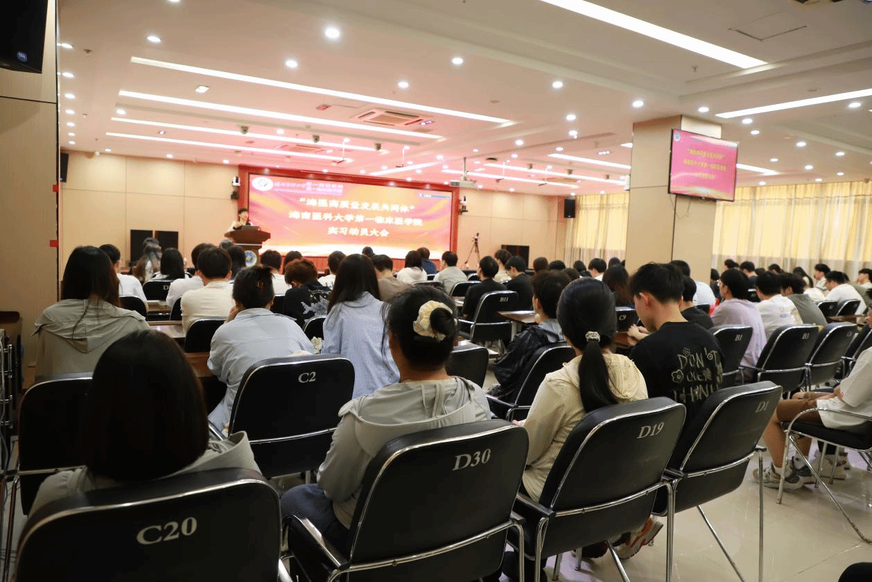 海南医科大学教务处处长李其富,第一临床医学院党委副书记孟凡莉,学院团委、教学部负责人及相关工作人员,往届实习生代表及2022级临床医学本科1班、5班、6班全体同学参会。会议由学院团委书记赖信翔主持。