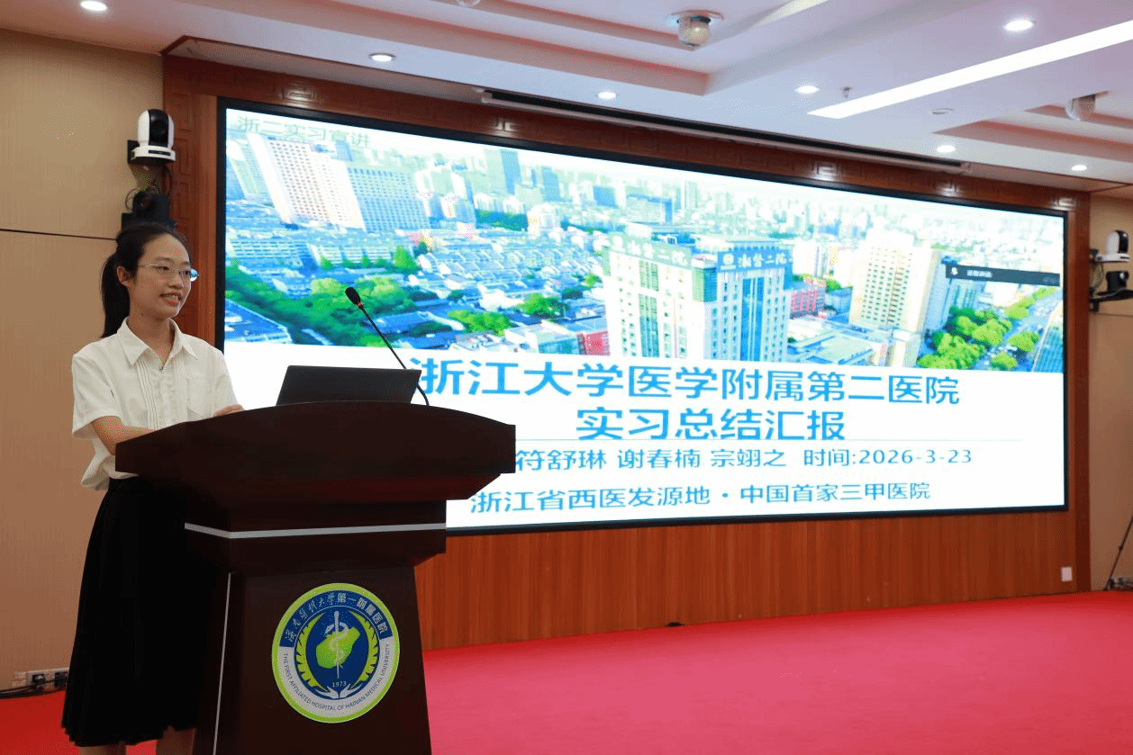 经验分享环节,南方医科大学附属第八医院顺德医院实习生孟晓媛以线上参与的形式,围绕临床适应、时间管理、生活保障等方面分享实习经历;浙江大学医学院附属第二医院实习生符舒琳结合自身实践,从医患沟通、技能提升、心态调整等角度畅谈收获与思考。两位同学的分享务实生动、干货满满,赢得在场师生阵阵掌声。