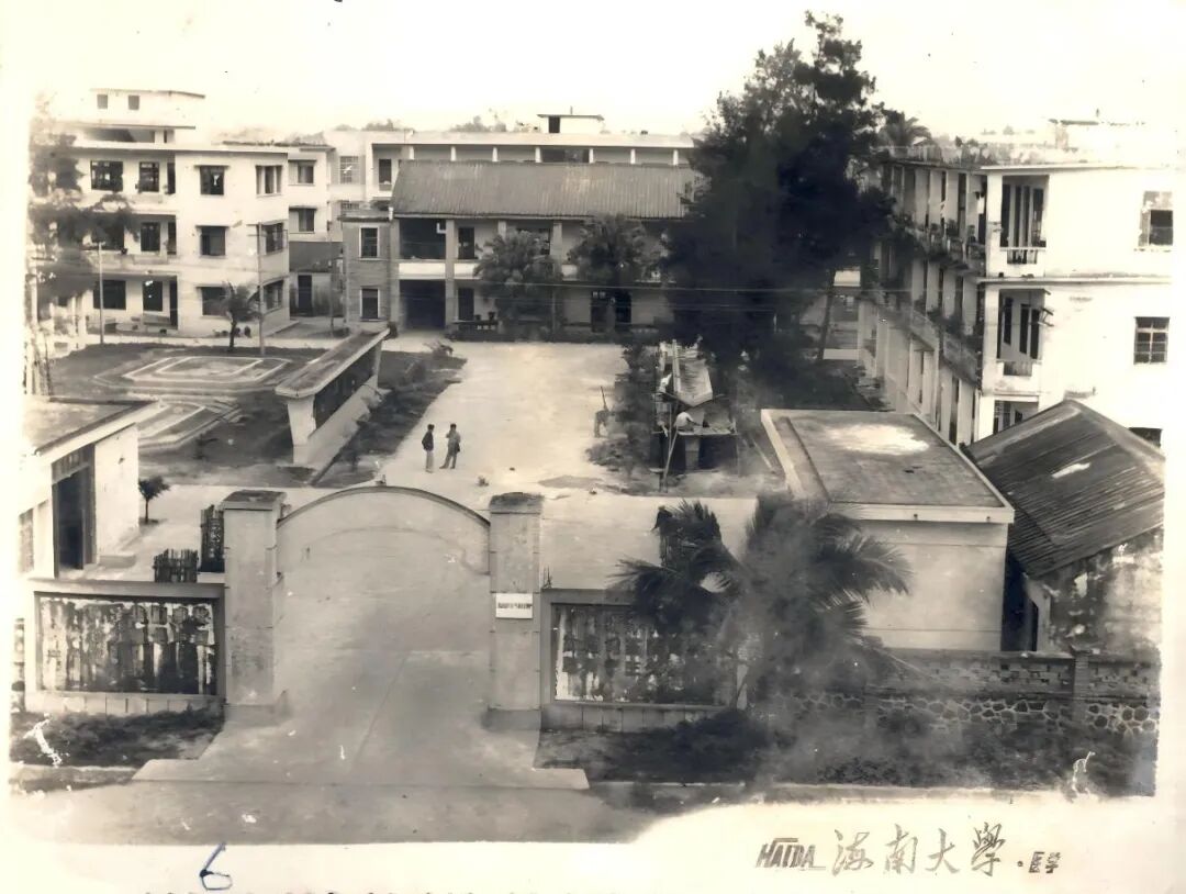 此次捐赠的照片,右下角均书写着“HAIDA 海南大学·医学”字样,清晰记录了医学部时期的学生公寓楼、外科楼等多个建筑的风貌。其中一张照片尤为珍贵,捕捉到了悬挂临时门牌的海南医专门楼,尽管照片上铁质门牌上的横书字迹略显模糊,但经初步判断,很可能正是“海南大学医学部”字样。这与先前校友们发现的校门照片形成了有力的互证,极大地丰富了此历史阶段的校园记忆。
