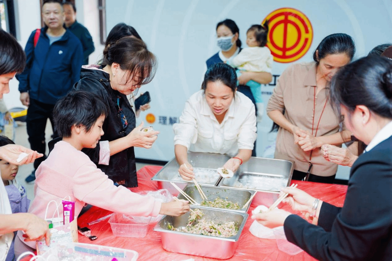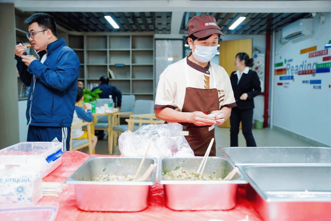 亲子课堂结束后,趣味包饺子活动热闹开启。活动食材由学校和方源综合服务有限公司友情赞助,现场还贴心准备了小点心、蛋糕及各类茶歇饮料。后勤处、天猫超市还为参加活动的小朋友准备了零食小袋,细节之处尽显暖意。