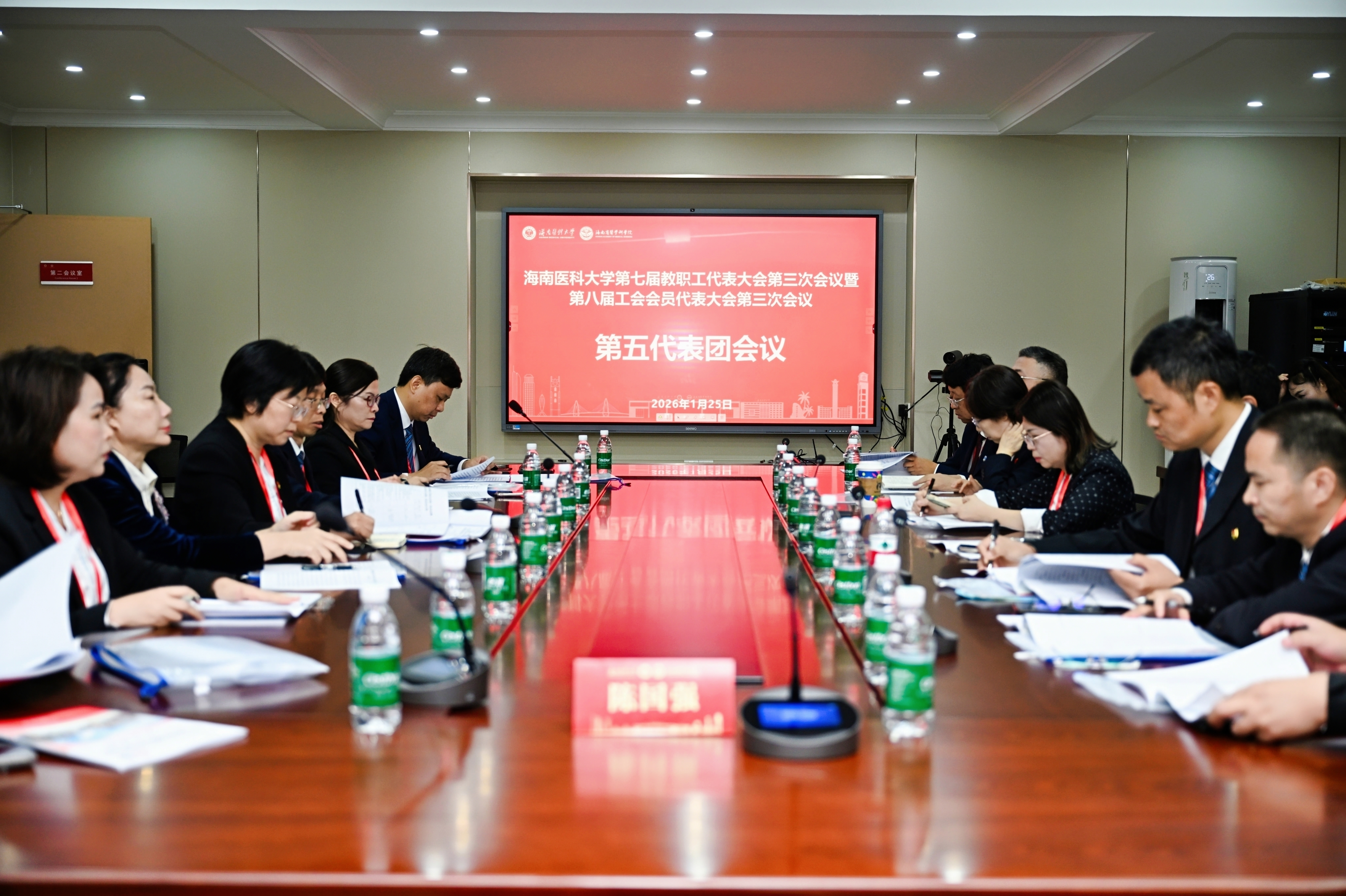 大会还听取了《海南医科大学2025年预算执行情况和2026年预算草案的报告》,书面审议了《海南医科大学第七届教职工代表大会提案工作委员会2025年代表提案工作报告》等文件。