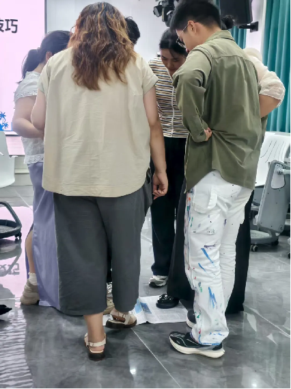 随后的“同舟共济”环节将气氛推向高潮。各小组将报纸视为“救生船”,需协作使全体成员站上报面,并随着报纸一次次对折不断挑战极限。从从容站立到金鸡独立、彼此搀扶,各组不断调整策略、创新方法,充分展现了团队凝聚力与创造性思维。紧张又欢乐的场面感染了每一个人。