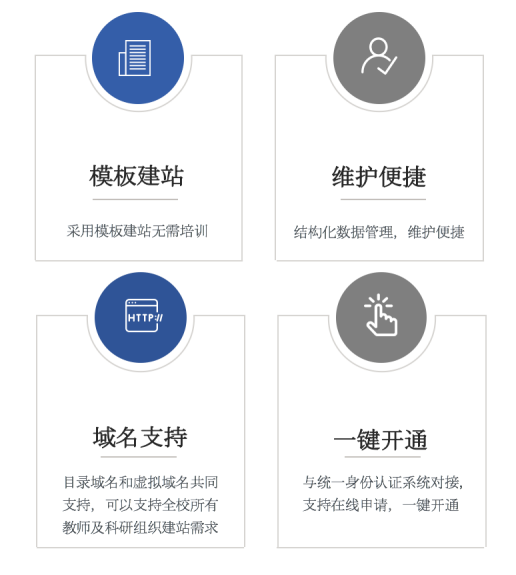 科研类网站群,在保证科研类网站统一安全,统一管控的条件下,既是教师与团队对自身教学和学术研究的宣传,也体现了学校在教学、科研、人才培养方面的水平。