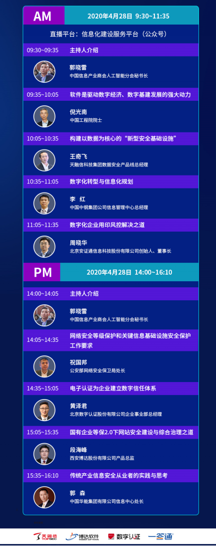 本次会议特邀中国工程院院士倪光南、公安部网络安全保卫局处长祝国邦等大咖进行最新工作要求政策解读,更有以中国中钢、华能集团天融信等优秀企业代表进行最新行业分享。