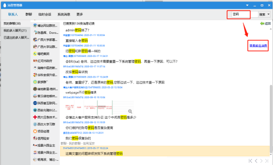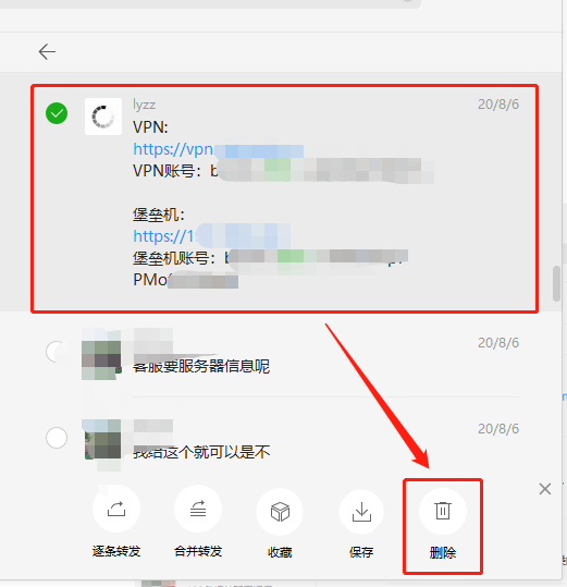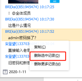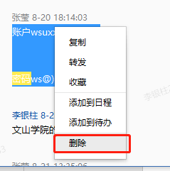 3)选择包含密码信息的聊天记录,右键—删除选中记录: