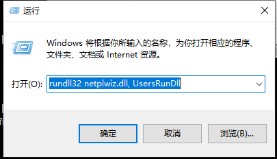 输入:rundll32 netplwiz.dll, UsersRunDll 运行