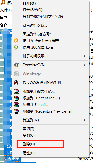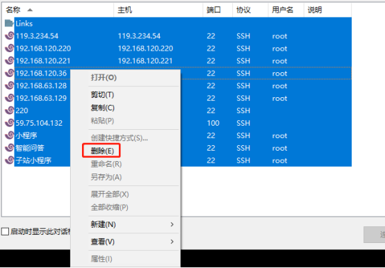 3) 选择包含账号密码等远程信息的消息记录,右键—删除