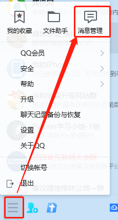 1) 企业微信中,选择“更多”按钮---“消息管理器”: