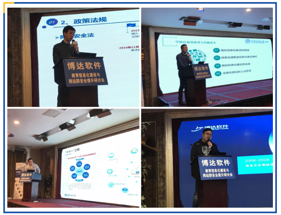 湖南省教育网络协会秘书长刘海韬、西安博达软件营销副总贾凌为本次会议致开场词,对于各大高校网络信息化建设的大咖及老师们的莅临表示衷心的感谢。