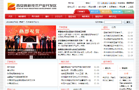 西安高新技术产业开发区门户网站作为作为西安高新区信息公开、新闻发布、政策阐释、公众参与、网上办事的主渠道、主阵地,紧紧围绕开发区各项工作,倾力打造政务公开平台、工作展示平台、政务服务平台,为开发区的各项工作提供舆论和服务支持。在进入网站首页之前,通过一个简单的引导页,网站用户可以直接点击相应版块获取信息和服务。网站首页设有高新新闻、园区动态、信息公开、媒体关注、专题建设等版块,以文字、图片等多种形态呈现高新区发展动态。为突出网站的服务功能,围绕政务公开、网上办事、投资高新、公众参与,针对各大版块定位和服务对象,精心策划设置栏目,精选网站内容,增强网站的服务效能、传播力和影响力。