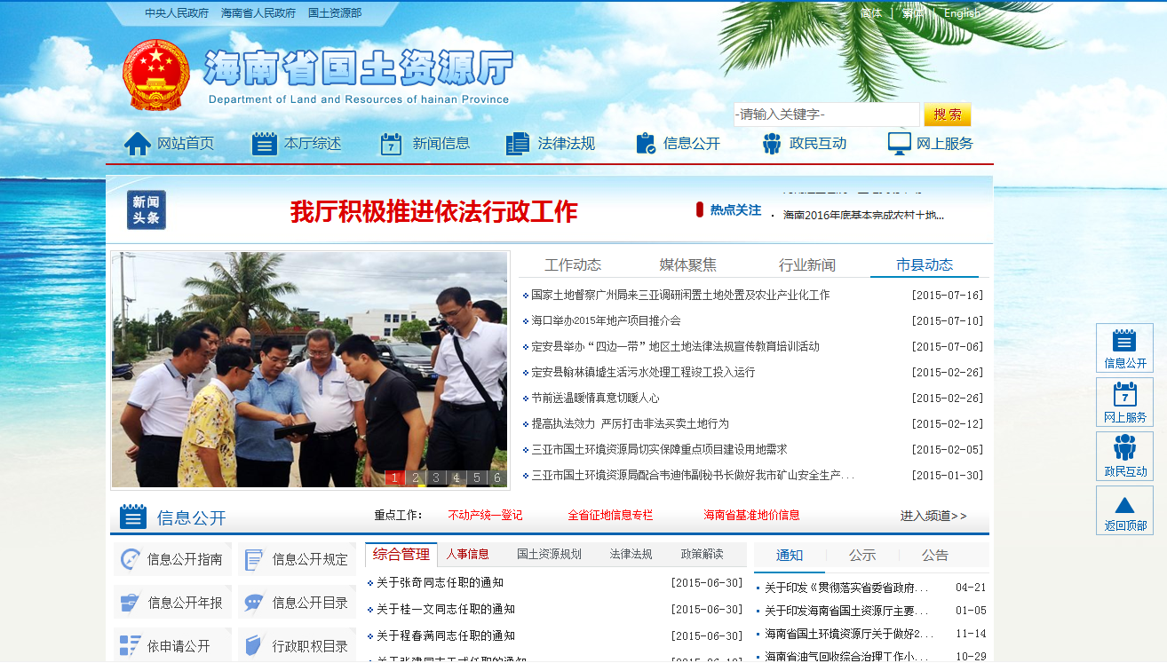 海南省国土资源厅网站主页截图