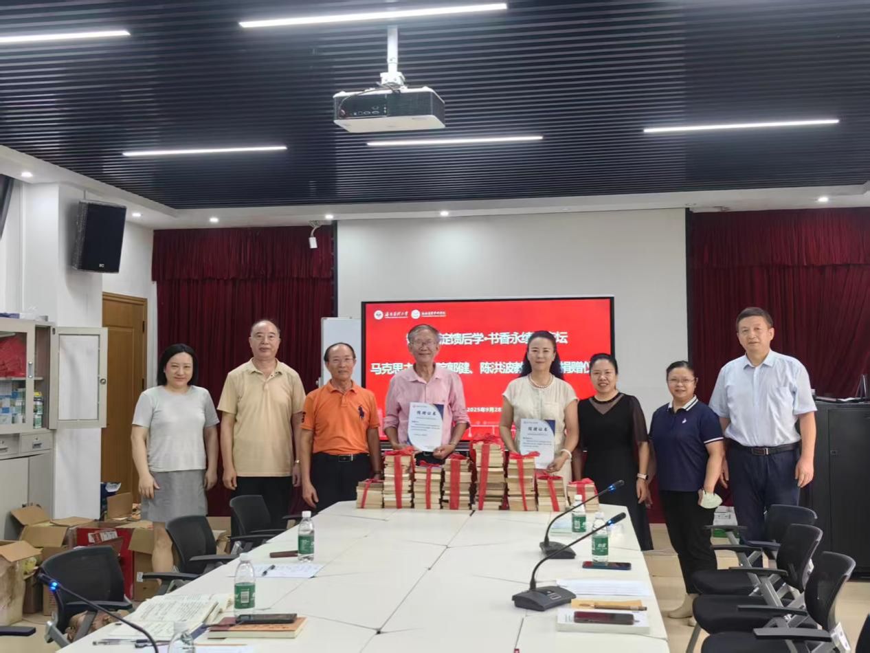 2025928日上午,海南医科大学马克思主义学院在学院会议室举行了一场意义非凡的图书仪式。仪式由马克思主义学院黎同柏老师主持,学院党委王身坚书记、周书俊院长,以及退休教师郭、陈洪波和全体教师参加了此次活动。