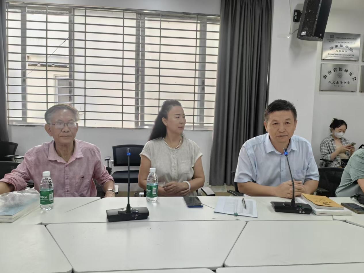 仪式伊始,黎同柏老师向在场的老师们介绍了郭和陈洪波两位教授。郭教授曾任人文社会科学部副主任、《中国近现代史纲要》首任教研室主任,为学院的教育改革积累了诸多成果,获海南省高校思政论文一等奖,被聘为学校教学督导员,多次被评为学校优秀带教老师、优秀社团指导老师。退休后,他开设了《人文摄影知识》选修课,还积极参与学院组织开展的公益活动。陈洪波教授曾任《中国近现代史纲要教研室第二任主任,提出过专题化教学改革思路,深受师生的好评,荣获海南医学院优秀教师”“我最喜爱的老师等荣誉。退休后一直关心学院发展。