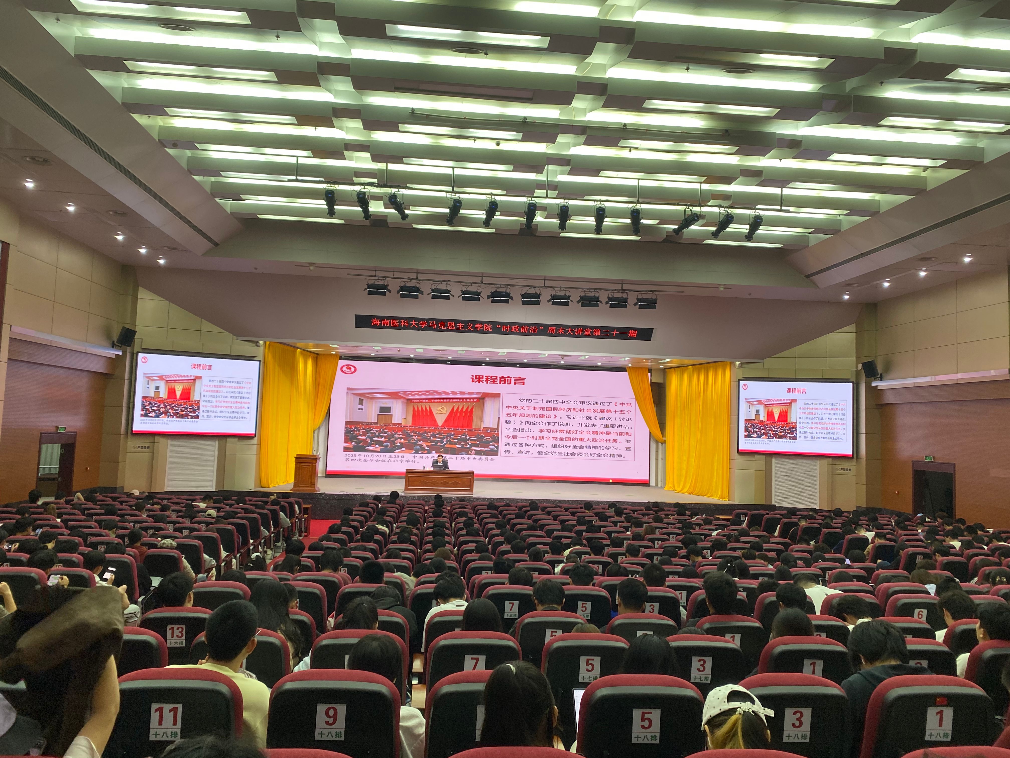 11月30日晚19:00,马克思主义学院“时政前沿”周末大讲堂在海南医科大学立德厅举办第21期专家讲座。本次讲座特邀中共海口市委党校政治教研室副教授、党的二十届四中全会精神海口市专家宣讲团成员周庆,作了题为“学习宣传贯彻党的二十届四中全会精神”的专题报告,马克思主义学院部分教师及学生代表共600人参加了此次学习。