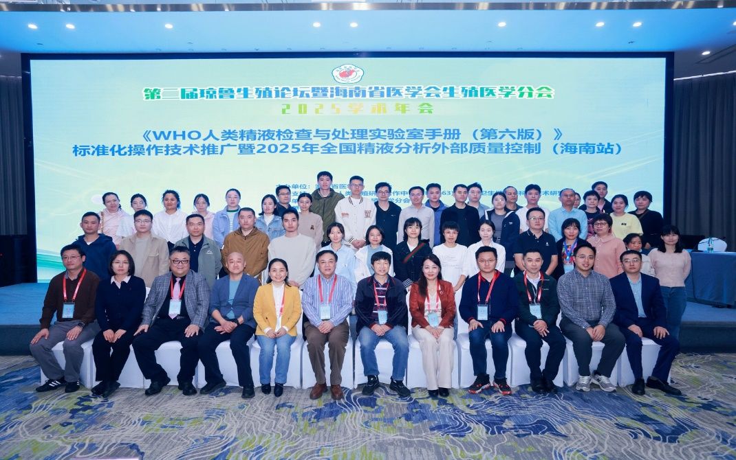 为精进海南省生殖医学核心临床技术,规范人类精液检查与处理实验室手册(第六版)标准化操作技术推广暨2025年全国精液分析外部质量控制,推动海南省生殖健康诊疗水平同质化提升,2025年11月28日,由海南省医学会主办,海南省医学会生殖医学分会、海南医科大学第一附属医院承办的精液检查培训实操班在海口完美举办。本次实操班汇聚省内生殖医学相关专业教授与一线临床骨干,及其实验室人员齐聚一堂,通过专题授课、实操演示、手把手带教等多元形式,为参会者搭建了一个高效务实的学习交流平台。我们邀请到了国家卫生健康委科研所/WHO人类生殖研究合作中心人类精子库卢文红教授,国家卫生健康委员会科学技术研究所/WHO人类生殖研究合作中心谷翊群教授,海南海南医科大学第一附属医院黄元华教授,海南医科大学第一附属医院马燕琳教授,海南菁华生殖妇产医院许蓬教授,国家卫健委科研所/WHO人类生殖研究合作中心周芳教授,海南医科大学第一附属医院张凌霄教授,海南医科大学第一附属医院张宇教授,海南医科大学第二附属医院黄勇教授,现代妇女儿童医院韦月颜教授。及精子培训班人员齐聚一堂,共同参与这场聚焦精液检查技术提升的专业培训。