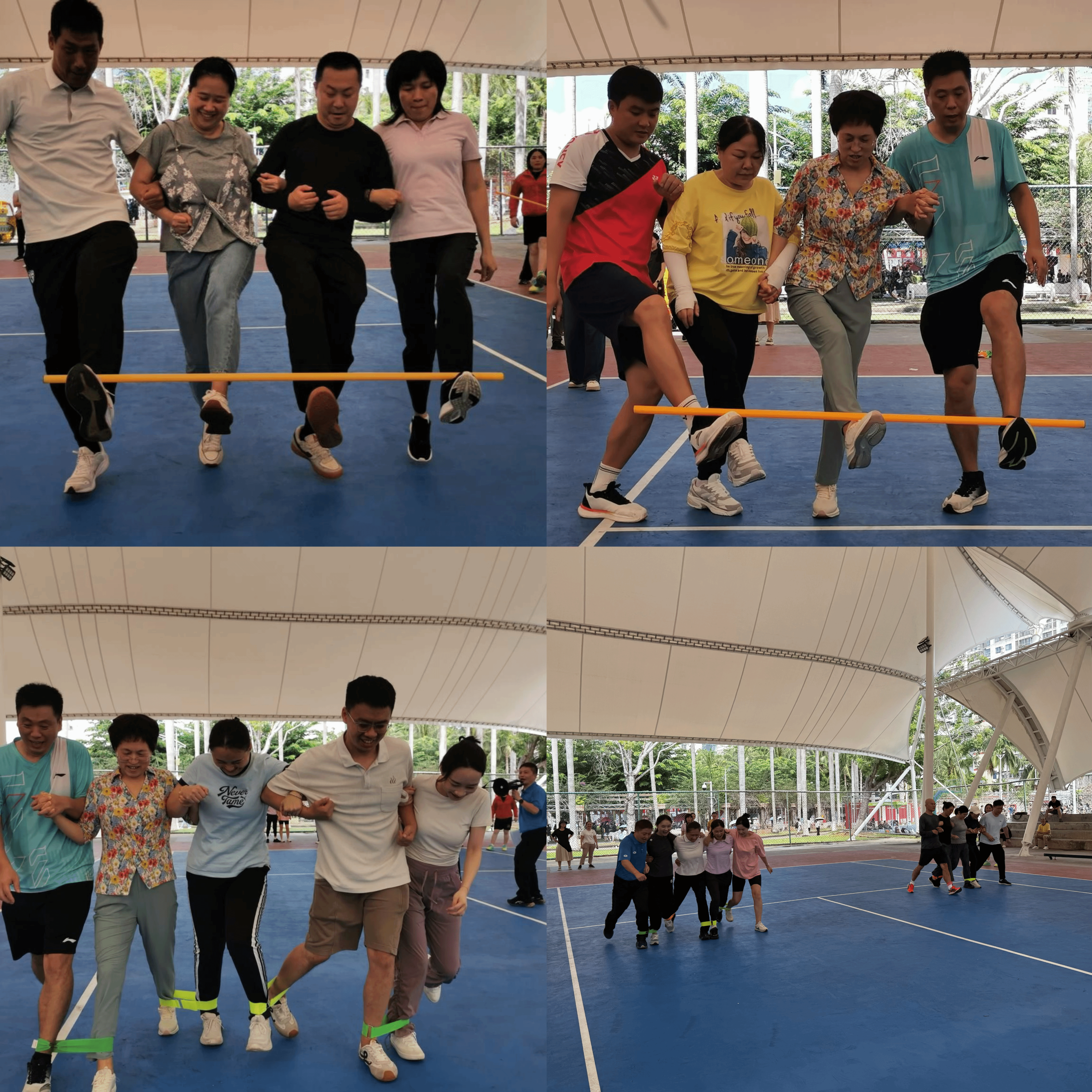 2025年9月15日上午,海南医科大学风雨操场人声鼎沸、欢声雷动,第四联合党委成立后的首次大型活动——“头雁领航强堡垒,协同奋进育新人”教职工拓展活动在此火热举行。第四联合党委书记常彩红、体育部主任陈基成、副主任袁丽、外语部副主任李丹云,以及继续教育学院、体育部、外语部近80名教职工齐聚一堂,以昂扬姿态共赴一场团结与速度的盛宴。体育部教职工民航充分发挥专业优势,为赛事成功举办提供专业的组织和裁判支持。本次活动旨在促进三个部门教职工之间的交流与协作,为后续工作开展奠定良好的基础。