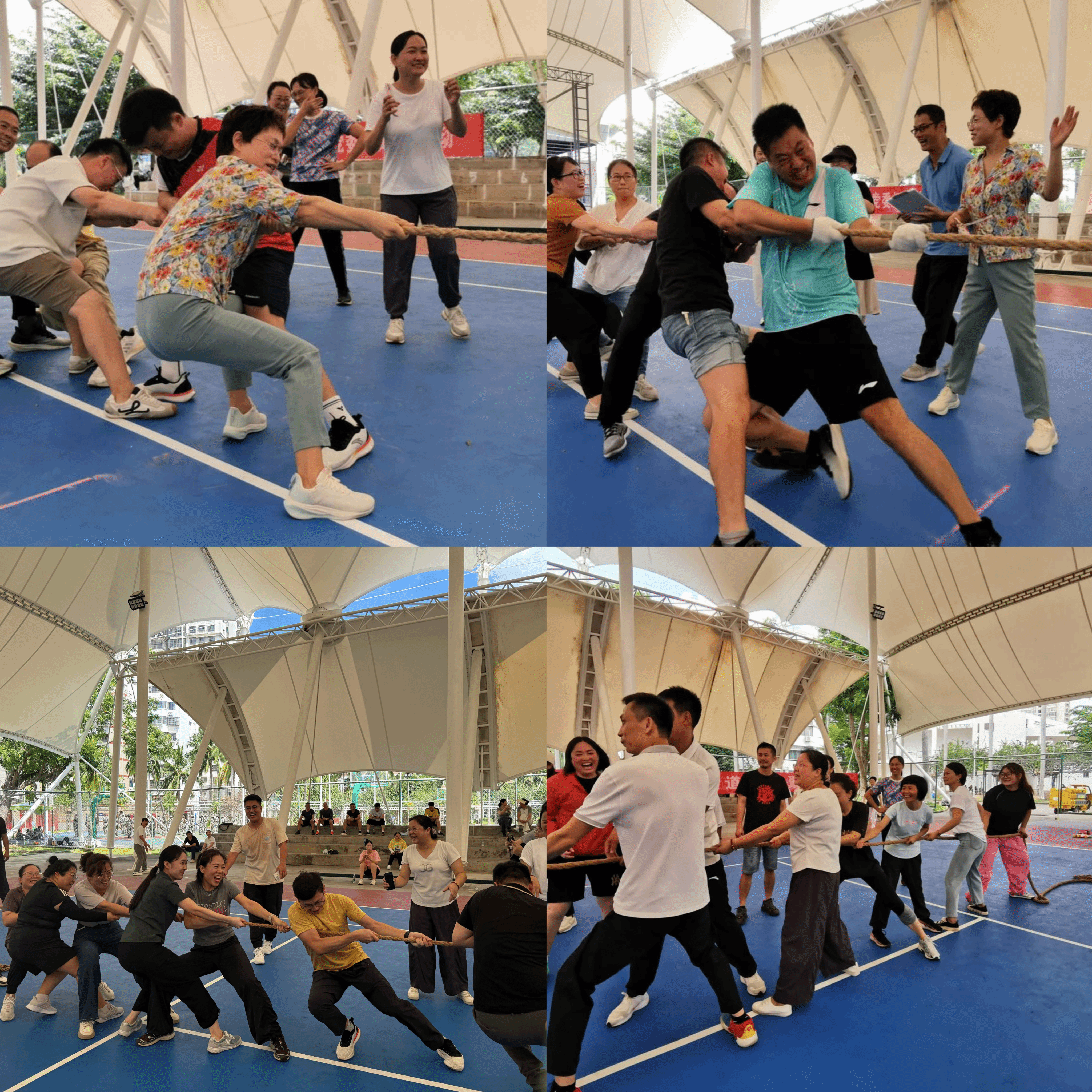 5、拔河——粗绳居中,红绳一寸不让,双方“拉拉队”声浪盖过秋风,尽显“一条绳、一条心”的钢铁意志;