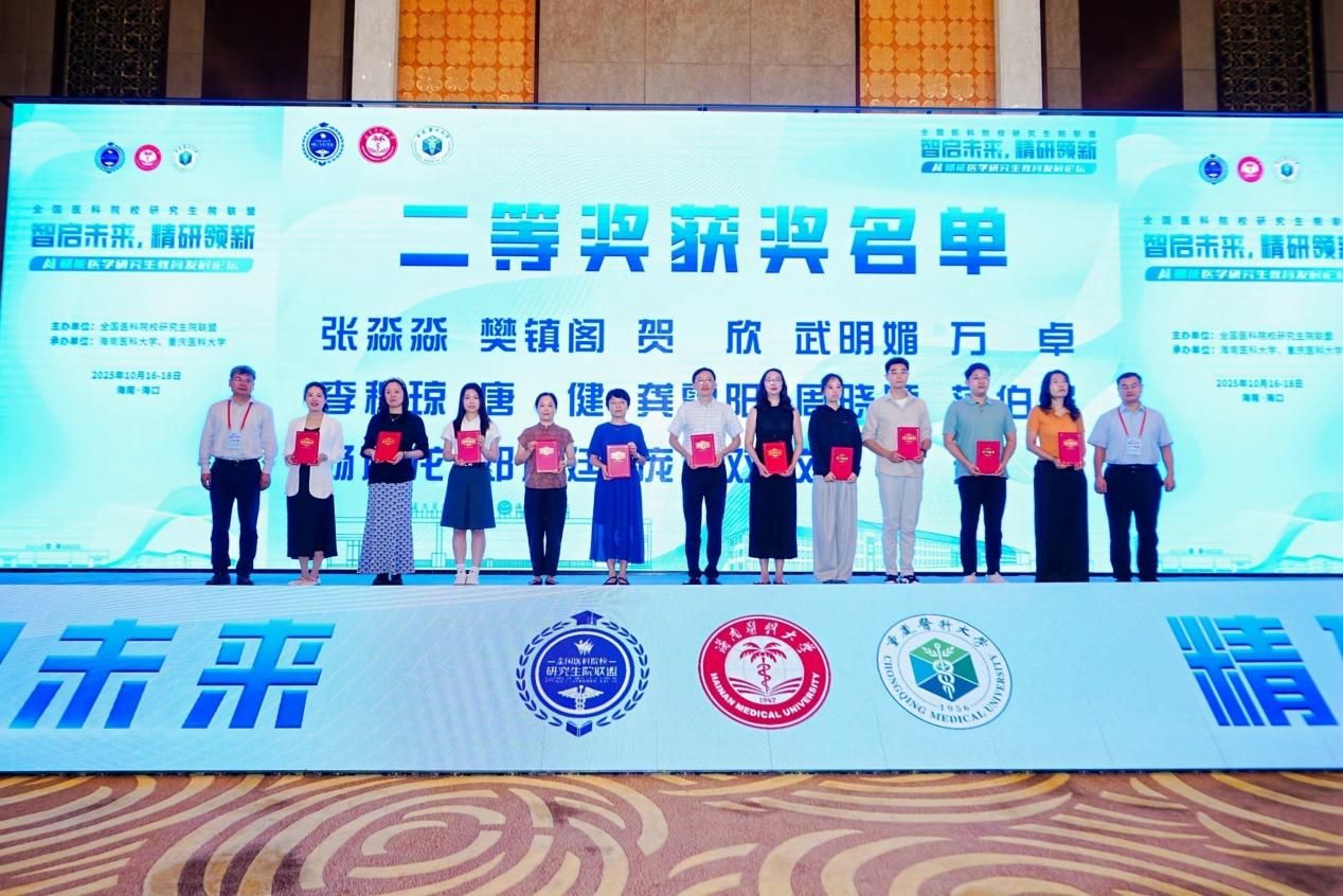 刘锦、李渝凤、黄斌文、河北医科大学副校长闫宝勇、河南医药大学副校长姬广军、全国医学专业学位研究生教育指导委员会秘书处办公室主任贾金忠为优秀论文获奖者颁发荣誉证书。