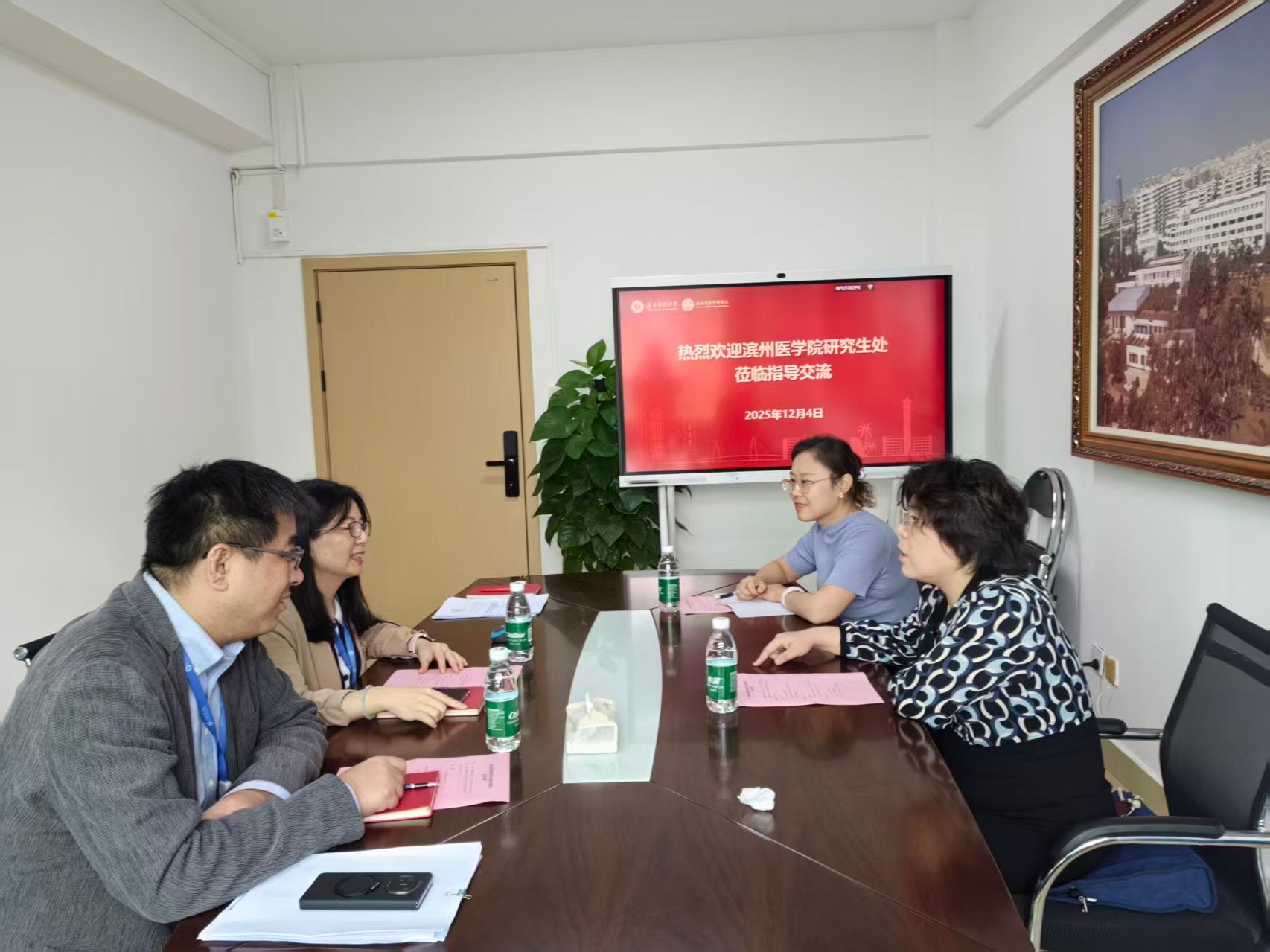 2025年12月4日上午,滨州医学院研究生处处长、学科建设办公室主任张璐萍一行到访海南医科大学研究生院,就学科建设、博士点培育等议题开展交流座谈。座谈会在海南医科大学城西校区文墀楼305会议室举行,由海南医科大学研究生院院长张帆主持。