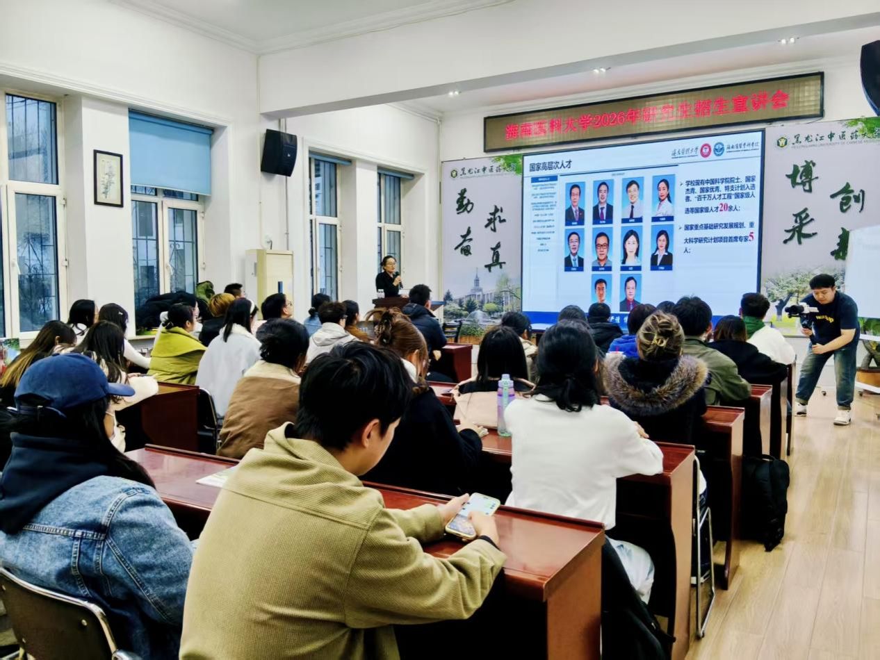 近日,海南医科大学研究生院组织招生宣传队,分赴哈尔滨医科大学、黑龙江中医药大学及温州医科大学,开展2026年研究生招生宣传工作。此次系列宣讲旨在主动对接优质生源,全面展示学校改革发展成果,吸引更多优秀学子投身海南自贸港医学事业。