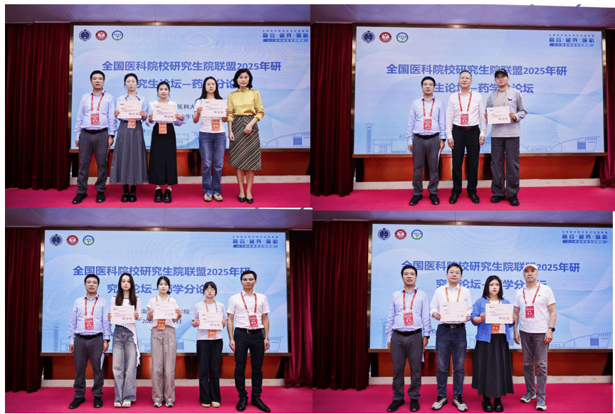 论坛尾声,特邀嘉宾海南医科大学药学院院长吴军教授、哈尔滨医科大学李柏岩教授、海南大学吴德燕研究员、海南医科大学药学院副院长刘艳教授为获奖学子进行颁奖。本次论坛既是对药学研究生培养质量的一次检阅,也是推动学科交叉融合的重要契机。未来学院将持续深化与全国高校的合作,以“十五五”学位点建设为抓手,为医药卫生事业发展培养更多高素质创新型人才。