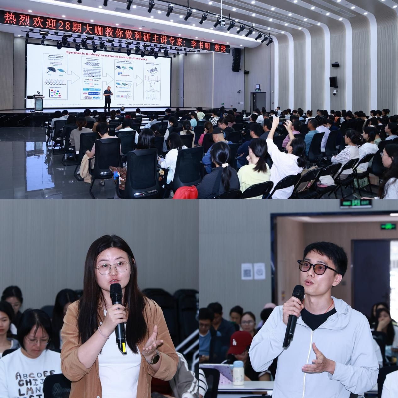 交流互动环节,现场师生踊跃提问、积极交流。李书明教授耐心解答了关于科研经历、非酶反应影响因素、合成生物学与多肽药理学结合前景等问题,并分享了忠实实验结果、重视科研意外发现的宝贵经验,为在场师生开展科研工作提供了重要启发。