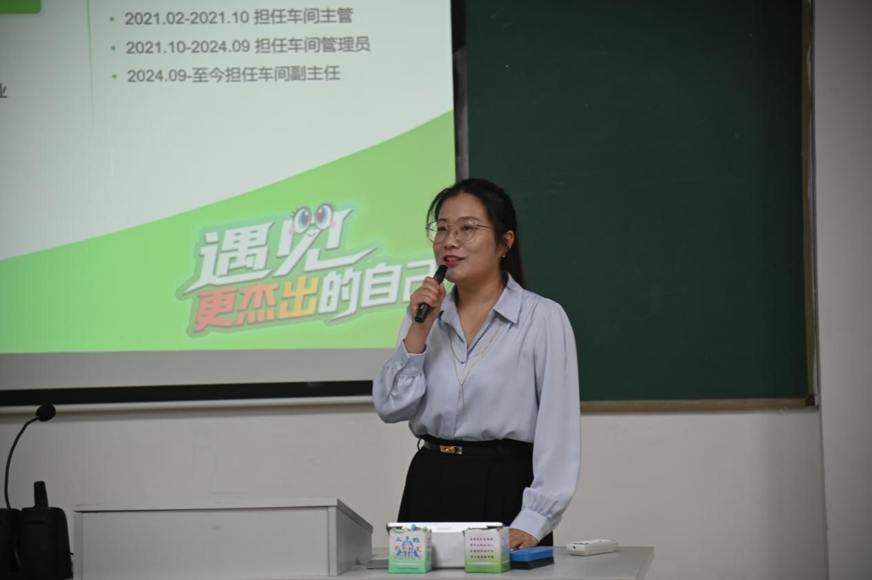 最后,海南先声药业HR宣讲官陈毅群经理为大家讲解了同学们最关心的2026届校招政策,她同时分享了自己的二十余年在多个岗位任职的工作经验,让同学们深刻理解了职业发展的多样性和可能性。她详细解读了校招流程、岗位需求及人才选拔标准,并强调公司注重应聘者的专业能力与综合素养。同时,结合自身成长路径,鼓励大家不管在什么岗位都要发光发热。