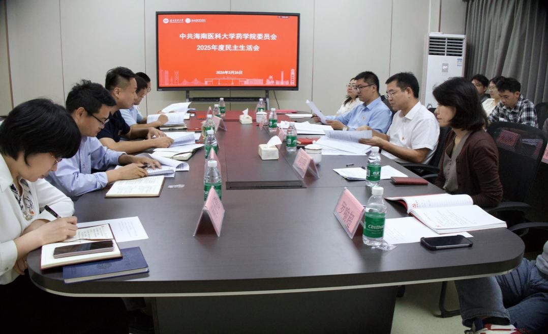 王朝昕代表学院党委作总结发言。他表示,衷心感谢学校党委和组织部长期以来对药学院的指导与支持,以及对本次会议提出的宝贵意见。学院党委将以此次民主生活会为契机,持续强化理论武装,严肃党内政治生活,深化党建与药学学科建设、人才培养、科学研究、社会服务深度融合,压紧压实管党治党政治责任,切实把会议成果转化为推动学院 2026 年各项工作提质增效的强大动力,为学校高质量发展贡献药学力量。