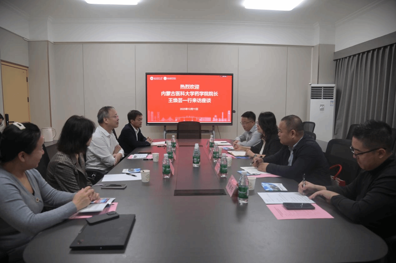 为促进跨区域药学学科交流,借鉴互鉴发展经验,2025年12月11日上午9点,内蒙古医科大学药学院院长王焕芸一行到访我院并进行座谈交流,药学院院长吴军主持本次座谈会。