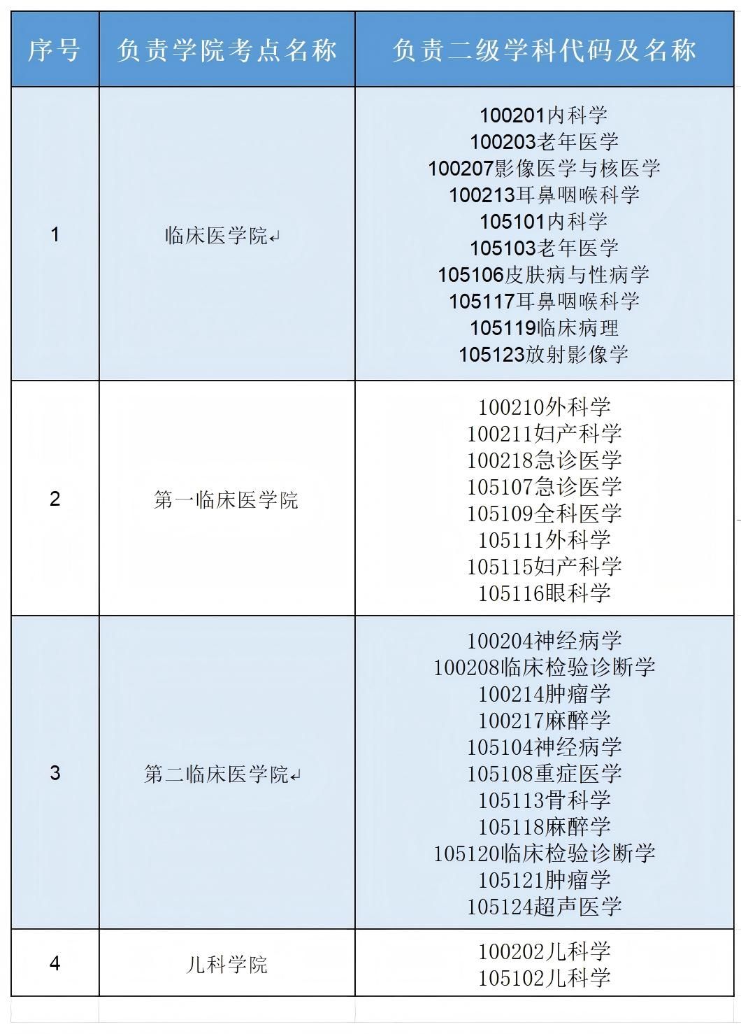 报考院系代码001海南医科大学的考生根据不同二级学科分别在不同考点进行复试,具体如下表: