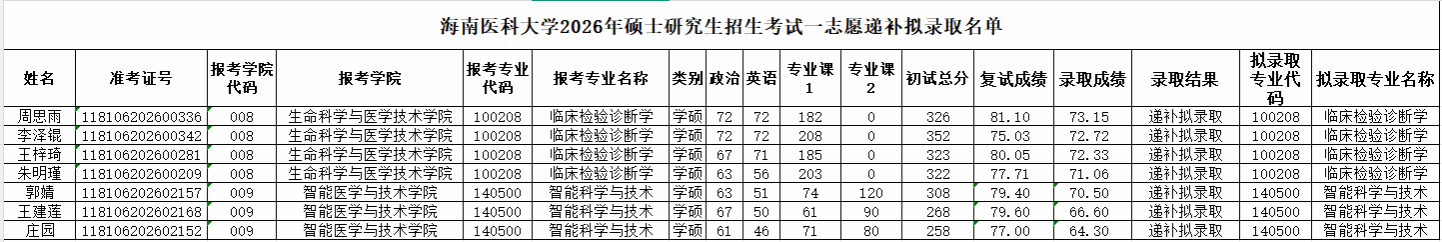 我校2026年硕士研究生招生实际招生计划有所增加,结合我校各专业生源情况、师资力量、学科发展需要等因素,拟递补录取7名第一志愿考生,该递补录取依据录取成绩排序依次补录。