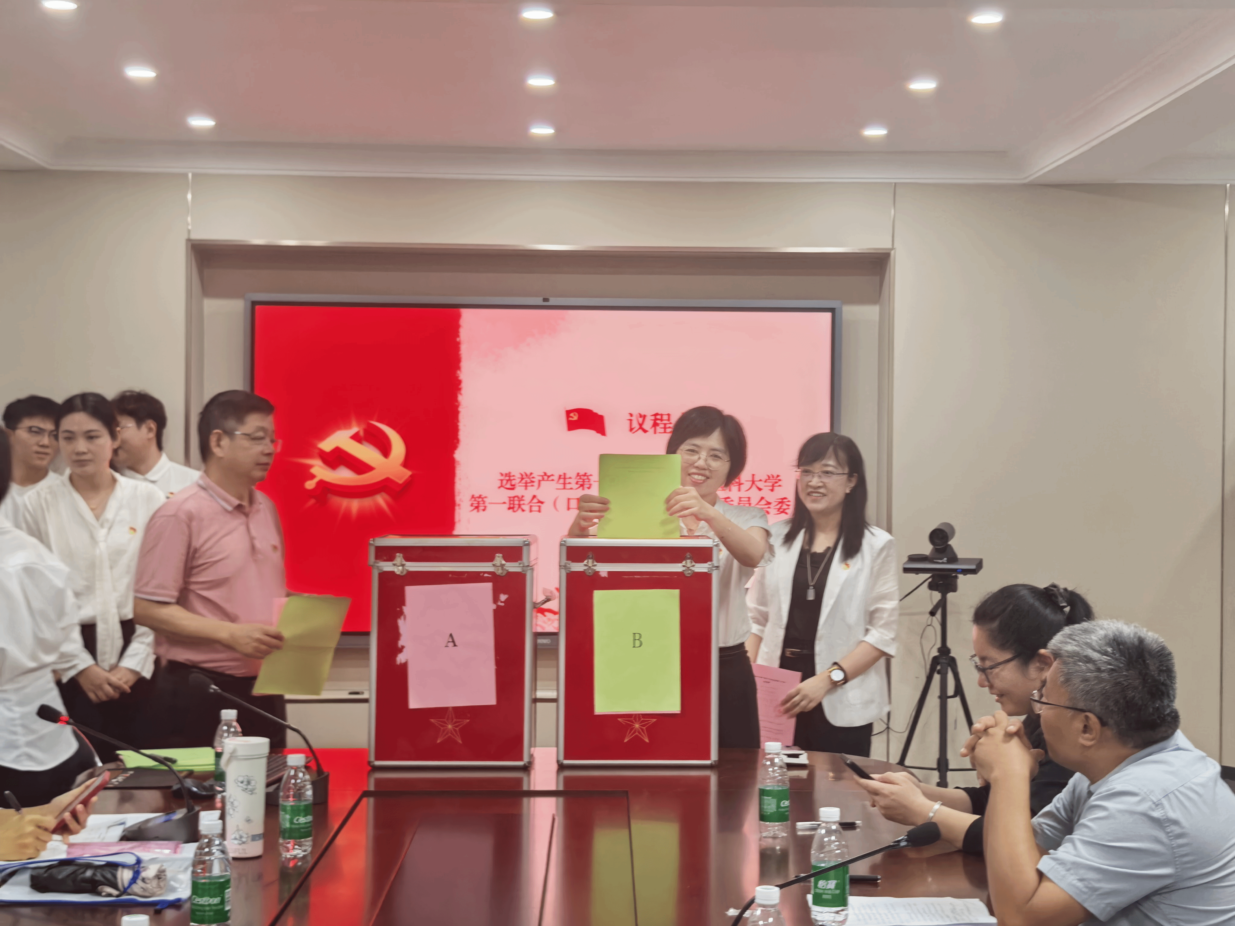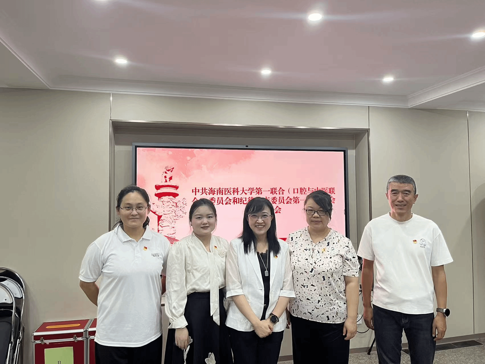 为进一步夯实基层党组织建设,切实增强党组织政治功能和组织功能,根据《中国共产党章程》和《中国共产党基层组织选举工作条例》等有关规定,经学校党委批准,中共海南医科大学第一联合(口腔与中医联合)委员会于2026年4月11日在行政楼三楼第二会议室召开第一届委员会换届选举大会。大会由朱敏同志主持,第一联合党委全体党员参加会议,共同见证这一重要政治时刻,共绘未来发展蓝图。